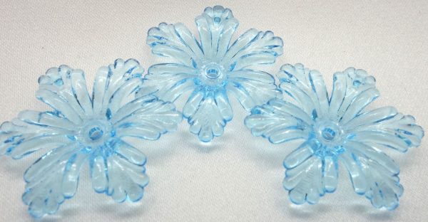 Fényes, műanyag virág, dekorációs termék. Alkalmas ékszerkészítéshez, de akár elvarrható ruhákra, kalapokra, táskákra, lakástextíliákra, dekorációs célra, szinte bármire.  Az ár egy darabra vonatkozik. Közepén lyuk van. Enyhén átlátszó.